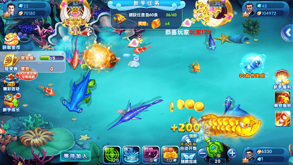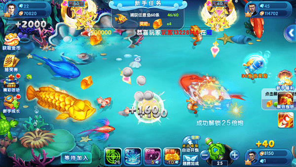 多人竞技:支持多人实时联网捕鱼,玩家可以与全球玩家一起竞技,争夺捕鱼排行榜的荣誉。