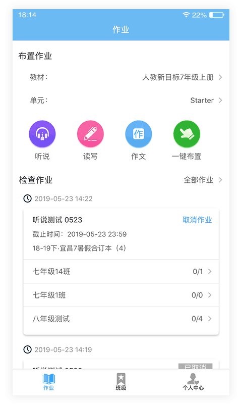 爱老师教师端专供老师使用,登录之后就能添加相应的班级,更便于管理自己的学生,同时还可以在线布置作业,所属教材、单元、作业内容都可以调整,每次的作业成绩都会自动统计,以便针对不同班级情况做出合理的教学调整。
