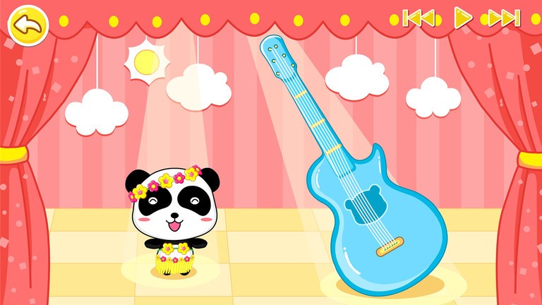 这里采用角色扮演的游戏模式,宝宝可以扮演熊猫的角色弹奏乐器;