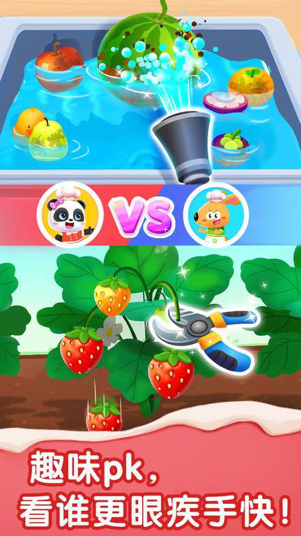 制作甜品需要不少水果,挑选水果也有讲究。快来匹配对手进行摘水果挑战吧,在这过程中宝宝需要快速反应,若摘到烂果或被蜜蜂干扰等,就会被对手赶超哦。
