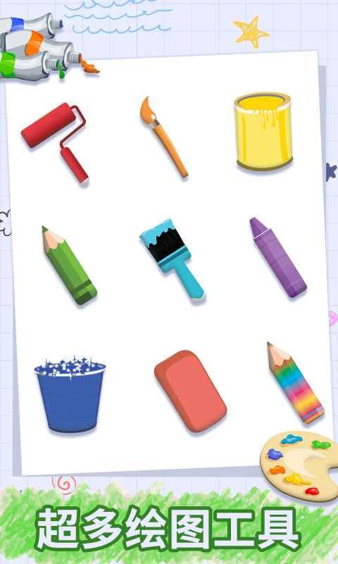 2、更是提供超多的绘图工具,真实模拟,让宝宝可以了解更多画画工具。