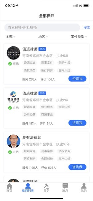 1、个性筛选律师,可以根据地区、案件类型以及律师擅长领域等筛选全部律师;