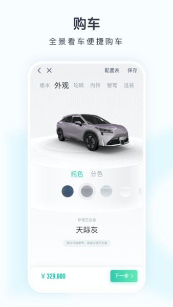 定制体验:配置卖点解析、3D全景定制、金融方案测算,简单直接透明购车