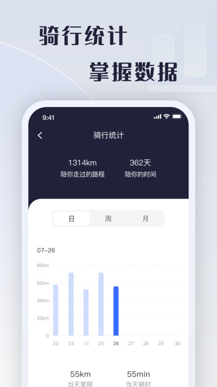 出行统计,每次出行的时候都能得到精准的统计,更好的记录下任何时候的骑行信息。