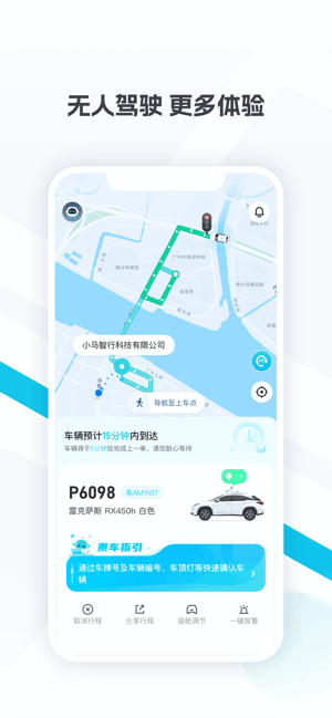 小马智行的最新版app提供无人驾驶服务,用户可以预约车辆、实时跟踪行程并享受多种车型选择。软件支持调节座舱设置、分享行程和一键报警等功能,确保安全出行。该服务已覆盖广州、北京、上海及美国多个地区。