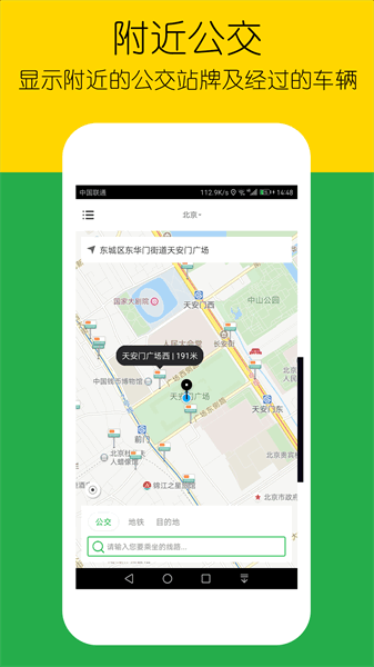 1、附近公交:自动定位显示最近的公交站台,以及公交站台经过的车辆。