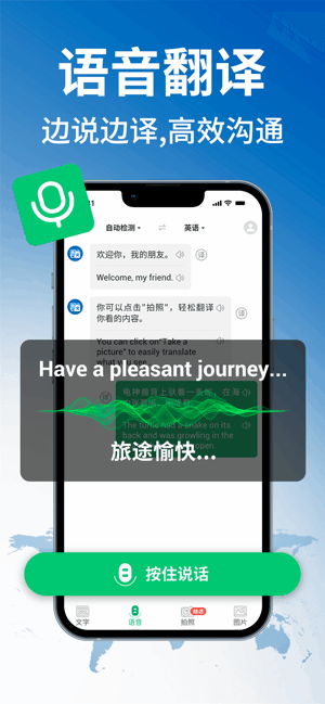 出国旅行,学习语言,跨界办公等场景的沟通交流。