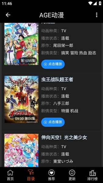 然后选择要看的动漫,选择“点击播放”就可以进入播放界面了;