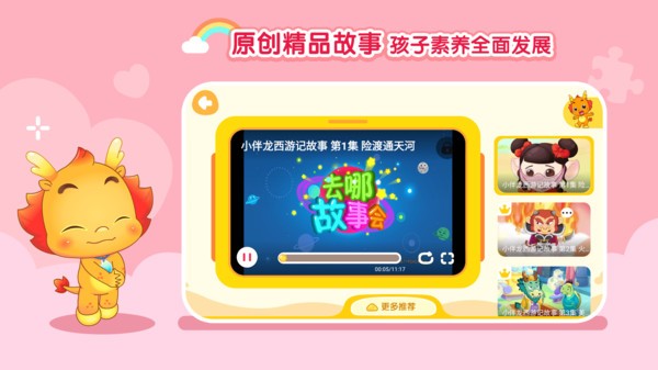 小伴龙原创互动教育内容,小伴龙陪孩子一起成长,通过不言之教给孩子们带来正面、积极、有价值的影响。
