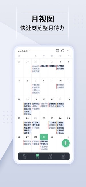 - 日历视图:按月或按周查看任务清单,方便进行周计划和月度规划,复盘过去,专注当下,规划未来。