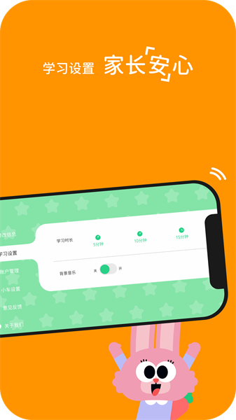 学习时长设置,背景音设置等功能,控制孩子使用时长,家长放心。