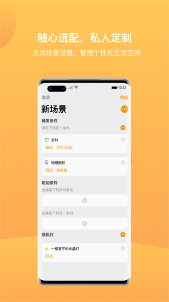 按照自己的使用习惯定制设备间的联动,一键操作完成多设备间的互动