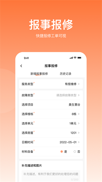 3、安全好用,住户发现有任何的破损或者是维修等,都可以在线去申报