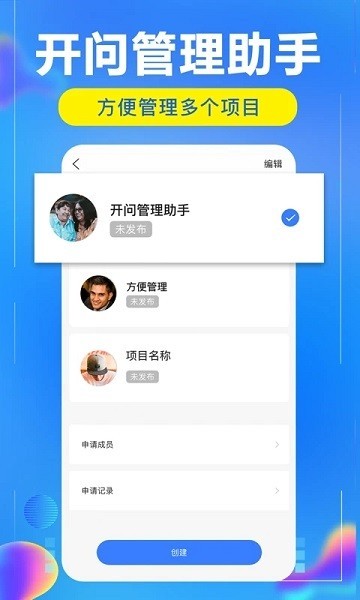 这款开问管理助手软件看起来挺实用的。它主要是用来管理小程序的工具型应用,功能挺强大的,支持内容、成员、权限等多方面的管理。操作很简单,不用写代码就能快速创建小程序,还能同时管理多个项目,切换起来也很方便。