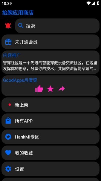 3.更多腕上应用一键轻松就能获取,更多HankMi精品可以下载,更新的手表应用。