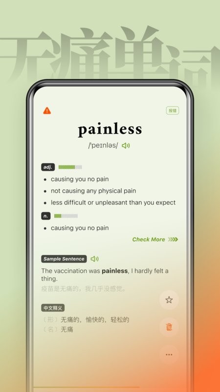 无痛单词安卓版是提供背单词学习的应用软件,海量单词,清楚释义,可视化显示学习,标准读音纠正发音,还以真实的语境强化语境,提高大家的英语听说读等多方面的能力,提供强大灵活的Painless记忆算法,不断查漏补缺,高效记忆更多单词!