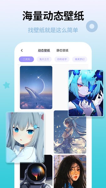 3.支持【动态壁纸】和【静态壁纸】,海量壁纸每日更新,完美适配高清大屏