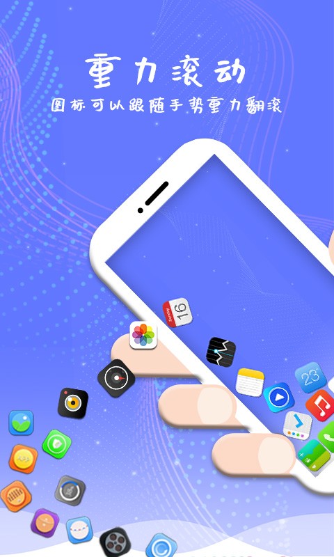 不同于固定的图标,会滚动的图标很炫酷哦!应用中的图标跟随着手势滚动起来,相互碰撞着,相互依偎成不同的图形。应用图标相互独立,不断滚动,不断的碰撞。也可以设置成动态壁纸。手机的照片也可以增加为图标,可以增加应用图标。增加设置功能,强大的设置功能满足需要。