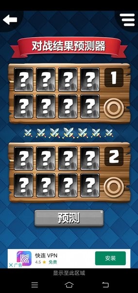 此应用程序用于预测任何皇室战争战斗中每个卡组的获胜百分比。 您只需要提供两个卡组,然后点击“计算”按钮,此应用程序将分析和显示在真实战斗中每个卡组的获胜百分比。适用于学习及在两个皇室战争卡组之间进行比较。 此应用也可帮助您创建最佳卡组以打败您的朋友或挑战者。