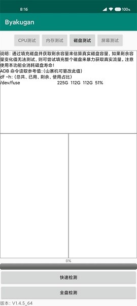 同样是以填充的方式来评估手机真实空间大小,分为两档,一个快速检测,一个全盘检测。