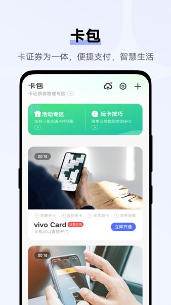 vivo钱包丰融借钱app(门禁卡)是vivo公司推出的正规手机钱包app,主要以金融服务和生活服务两大功能为主,金融方面包括了贷款和理财,为vivo用户提供专业的投资服务;生活服务方面功能就很多了,比如nfc门禁卡、公交卡、车钥匙、话费流量充值等。