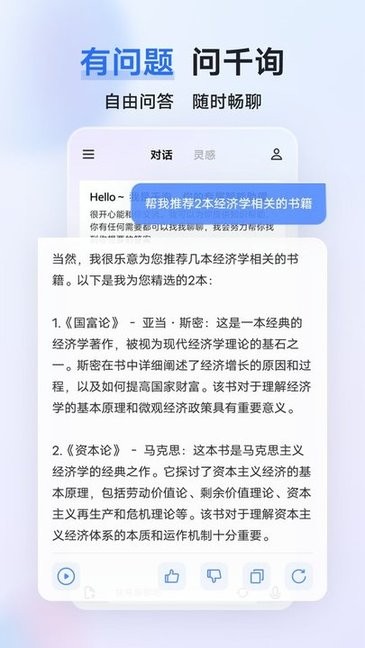 蓝心千询最新版是一款vivo手机智能ai问答助手工具, 可以自由问答,在线对话,随时畅聊,还可以在这里获取更多创意灵感,发挥创意,自由绘画,更是你的学习助手,掌握更多技巧,提升知识赋能,满足用户的需求,好用又实用!
