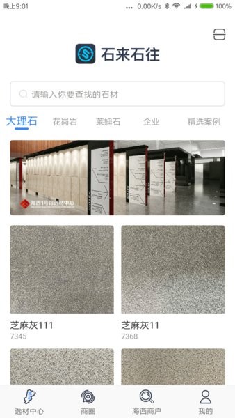 打开商圈,点击石圈,查看诸多的石材信息