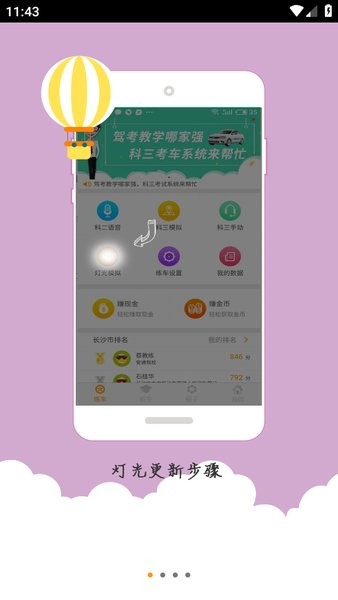 包括了所有的考试内容,如起步、行驶、变道、超车、靠边停车等等,每一个操作都有详细的语音提示,用户只要按照提示操作即可。