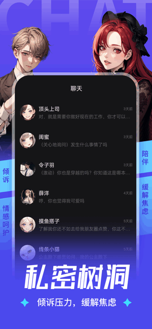 -- 在这里,每一位用户都能依据个人的独特喜好,精心雕琢并高度定制专属的AI角色。这些角色不仅仅是技术的产物,更是用户个性与梦想的延伸,通过深度对话的方式,引领用户沉浸于精心设计的剧情之中,仿佛亲身经历了一场场扣人心弦的故事。