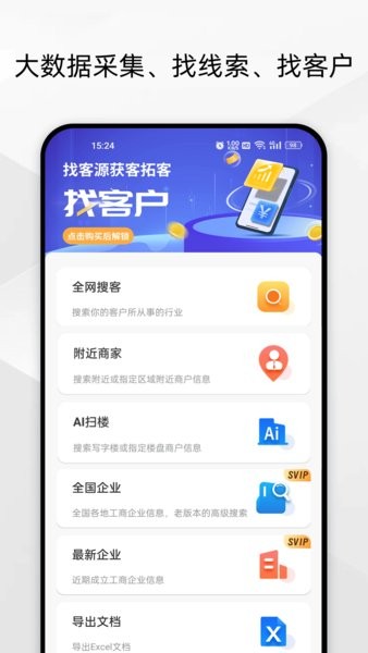 软件能够查找市面上的全部领域,包括个体商户和工商企业,为用户提供广泛的客户资源。