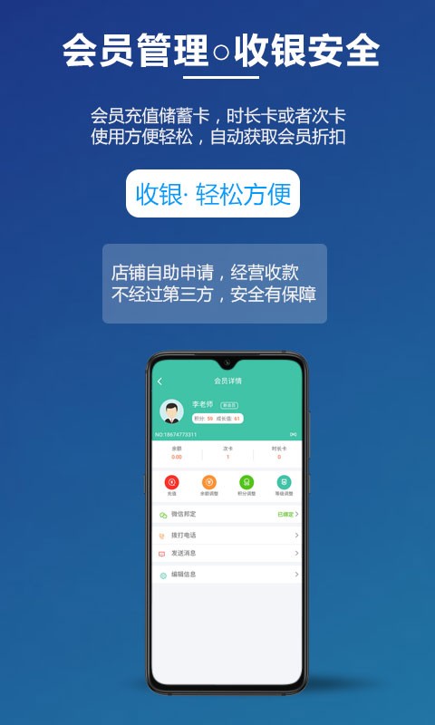 会员充值储蓄卡,时长卡或者次卡使用方便轻松,自动获取会员折扣