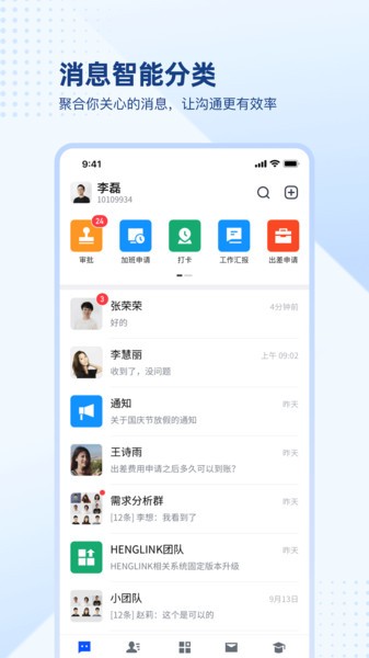 恒力办公henglinkapp手机版是一款为企业提供移动办公的软件,各类工作场景全覆盖,聚合你关心的消息,让沟通更加有效率,支持即时聊天,协同合作,还打造同意培训学习平台,方便员工学习成长,提高办公的效率,使用起来简单又高效!