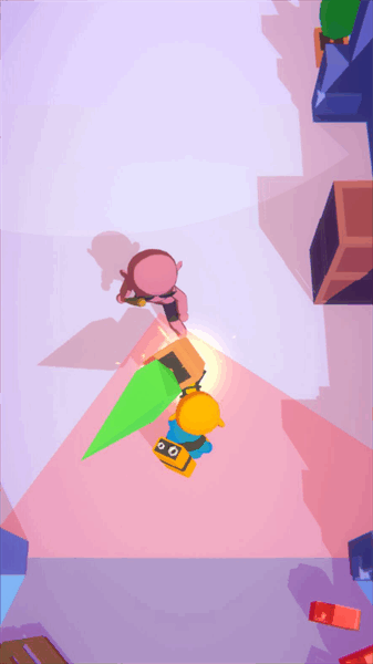 3.游戏简单易上手,手指滑动操作人物行走,靠近物体即可控制,点击并将物体推向敌人;