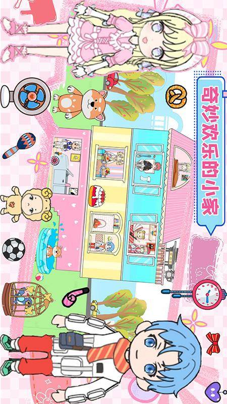 欢迎来到萌乐家园生日派对,在这里就像现实生活中的玩偶之家,你可以探索和创建你的虚拟家庭生活,并举办一场欢乐的生日派对。你可以带你的家人去厨房做饭,坐在客厅看电视,去孩子们的房间玩玩具或者在浴室洗衣服等。
