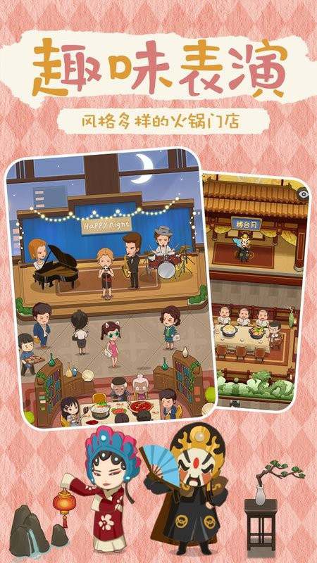《幸福路上的火锅店》是一款超级好玩的模拟经营手游,玩家可以扮演火锅店老板,从零开始打造自己的火锅帝国。游戏里你可以研发新口味的火锅、扩建店面、管理员工,甚至还能开连锁店!操作简单又有趣,特别适合喜欢经营类游戏的小伙伴。