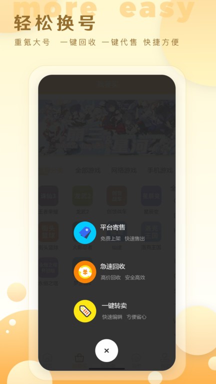 软件拥有寄售.回收.键转卖.换号.中介等系列功能。