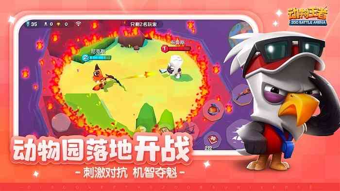 《动物王者》最新版本上线啦!这是一款全新的大逃杀手游,玩家需要在动物园里躲避管理员的追捕和各种危险,比如火焰攻击,和其他20名玩家展开生死对决。游戏提供多种模式,包括多人对战、好友组队等,还能购买战斗通行证解锁 exclusive内容。