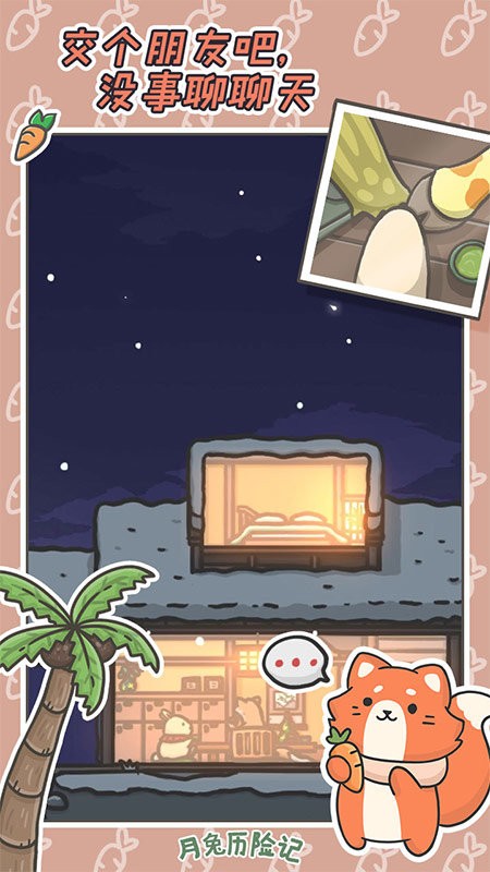 《月兔历险记》是一款画风清新的佛系手游,玩家可以跟着月兔一起体验乡村生活的治愈与美好。游戏里有各种有趣的剧情和谜题等待解锁,还能和许多可爱的NPC互动,比如杂货店老板尤里、熊猫波波等,每个角色都有独特的背景故事。白天钓鱼、晚上泡澡,生活节奏很慢,但充满了惊喜和温馨的细节。