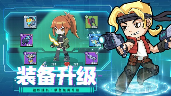 -- 轻松操控合金弹头英雄角色开启怪海割草,体验疯狂射击快感