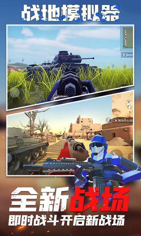 战地模拟器官方正版手游,战场模拟演习游戏,主要是以占领据点,击败对手来获得胜利。在游戏中玩家需要扮演主角与敌人战斗,击败敌人后获得分数,在规定时间内击杀数多的一方胜利,游戏中包含多个地图。您将拥有不同的武器,坦克、等军事装备。游戏中主视角的游戏模式代入感极强,同时类似像素方块的画面风格又消除了战场的暴力元素,让游戏变得幽默可爱,是非常适合放松心情的战争游戏。