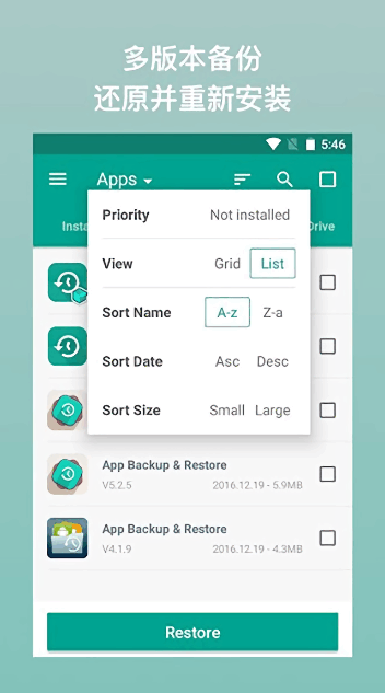 Alpha Backup Pro安卓版是阿尔法备份专业版,主要提供应用数据备份服务,功能比较强大,可以轻松管理各类应用程序,支持批量操作,在线搜索查找,随时传输,自由设置管理应用文件,一键备份同步数据,不用担心数据丢失!