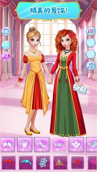 最棒的是,你还能给公主们选择宠物,比如松鼠、狗、鹿甚至雪人,感觉特别有趣!游戏里还加入了经营店铺的玩法,玩家可以装饰自己的裁缝店,体验当店主的感觉。每次完成装扮任务后还能获得奖励,比如新的工具和饰品,真的很有成就感。