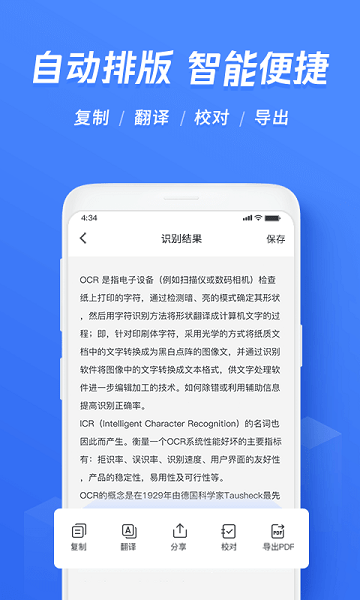 *手机拍纸质文档,智能裁边调节图像,识别结果自动排版,保留原文排版