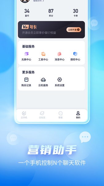 通过唔即云app能在云端同时生成多台云手机,实现一台手机操控多台云机,还可以同时下载多个聊天软件,三端互通,账号资料轻松同步,营销人员高效工作的不二之选,代替实体手机,降低成本。