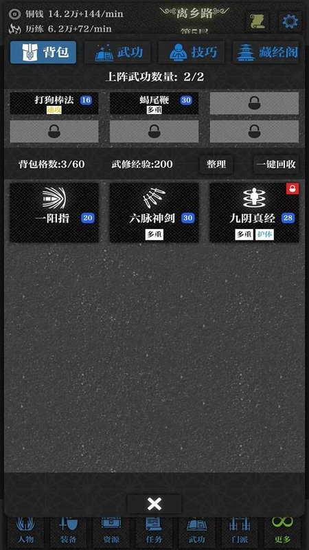 这是一款文字武侠放置游戏、八大门派、多种技能搭配,内容丰富,武侠元素满满、带你领略不一样的武侠江湖!