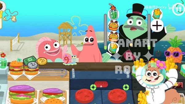 1、游戏将海绵宝宝中的形象都做出了还原,海绵宝宝、章鱼哥、派大星、蟹老板等经典形象在游戏中都可以见到。