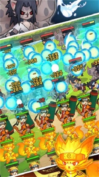 1、集合木叶、雾隐、砂隐、云隐等各大忍村的知名忍者,鸣人、佐助、我爱罗等角色悉数登场,每个忍者拥有独特技能与羁绊。
