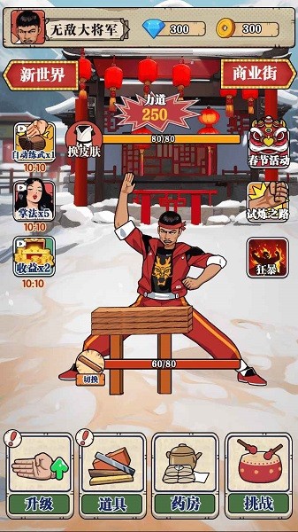 游戏通过独特的大师修行系统,让玩家在不断劈砖的过程中感受到身体的锻炼和功力的提升。这一系统增添了游戏的深度和可玩性。