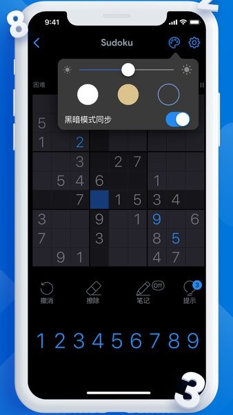 有三种外观可选择,可以更舒服地玩数独,甚至是在黑暗中!