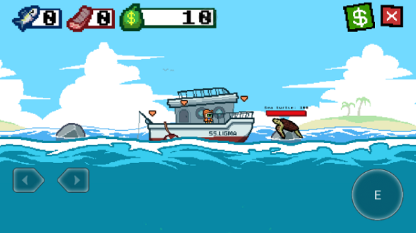 7、使用右上角的按钮进入商店购买升级您的刀,钓鱼线,和钩。重复,直到你最终规模的深度。